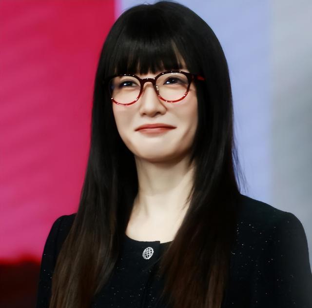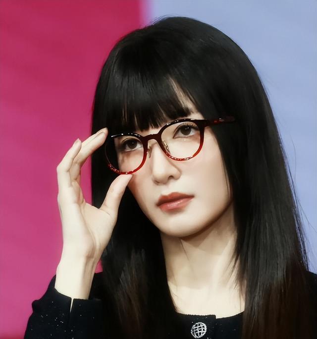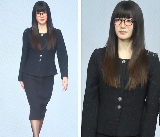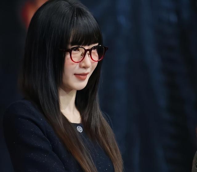 粗框眼镜把眼睛压成一条缝,气质从清冷变成刻板;全黑套装勒得下巴肉都出来了;底妆太厚,灯光一打像打了石膏。